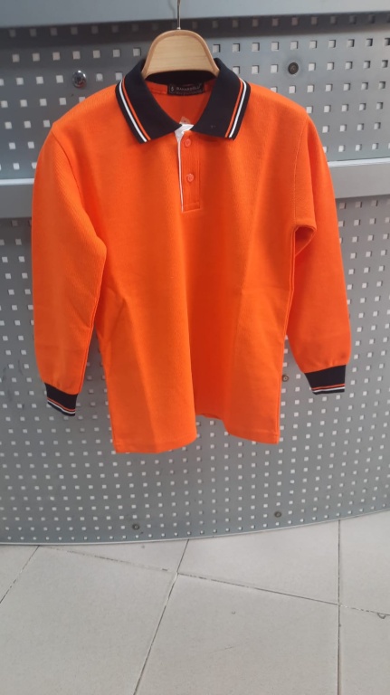 1. Turuncu bisiklet yakalı, hakim, polo, fermuarlı, yarım balıkçı kısa veya uzun kollu , pamuklu, yünlü, keten vb. doğal ve sağlıklı kumaşlardan (uygun oranlarda polyester, viskon vb. kumaş karışımları içerebilir), üretilmiş Tişört, Sweatshirt, Polar, Body, Kazak uzun kollu ise kol ucu manşetli.